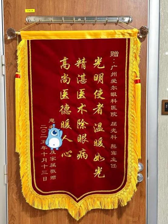 近日,在广州爱尔眼科医院屈光科诊室,32岁的袁先生将一面绣有“光明使者,温暖如光”的锦旗郑重交到熊露院长手中。“熊院长,这面锦旗您一定要收下!没有您的帮助,我现在还生活在睁眼便是痛苦的日子里。”这份朴实的感谢背后,是一段从绝望到重获清晰的求医历程。